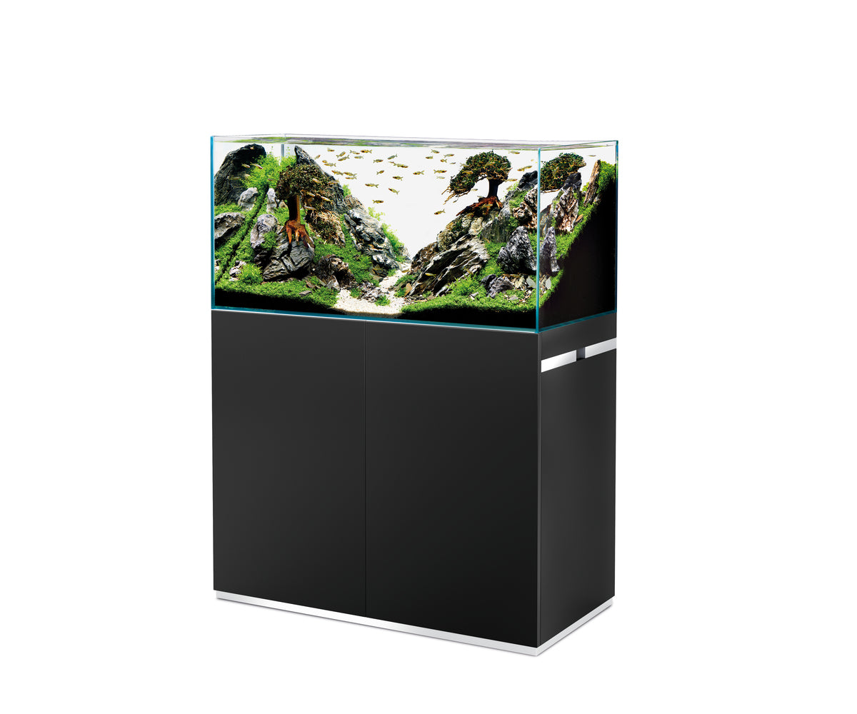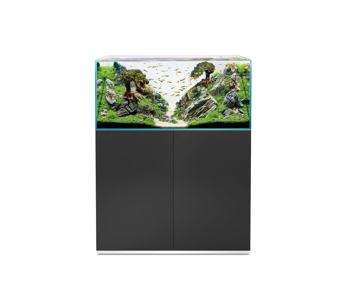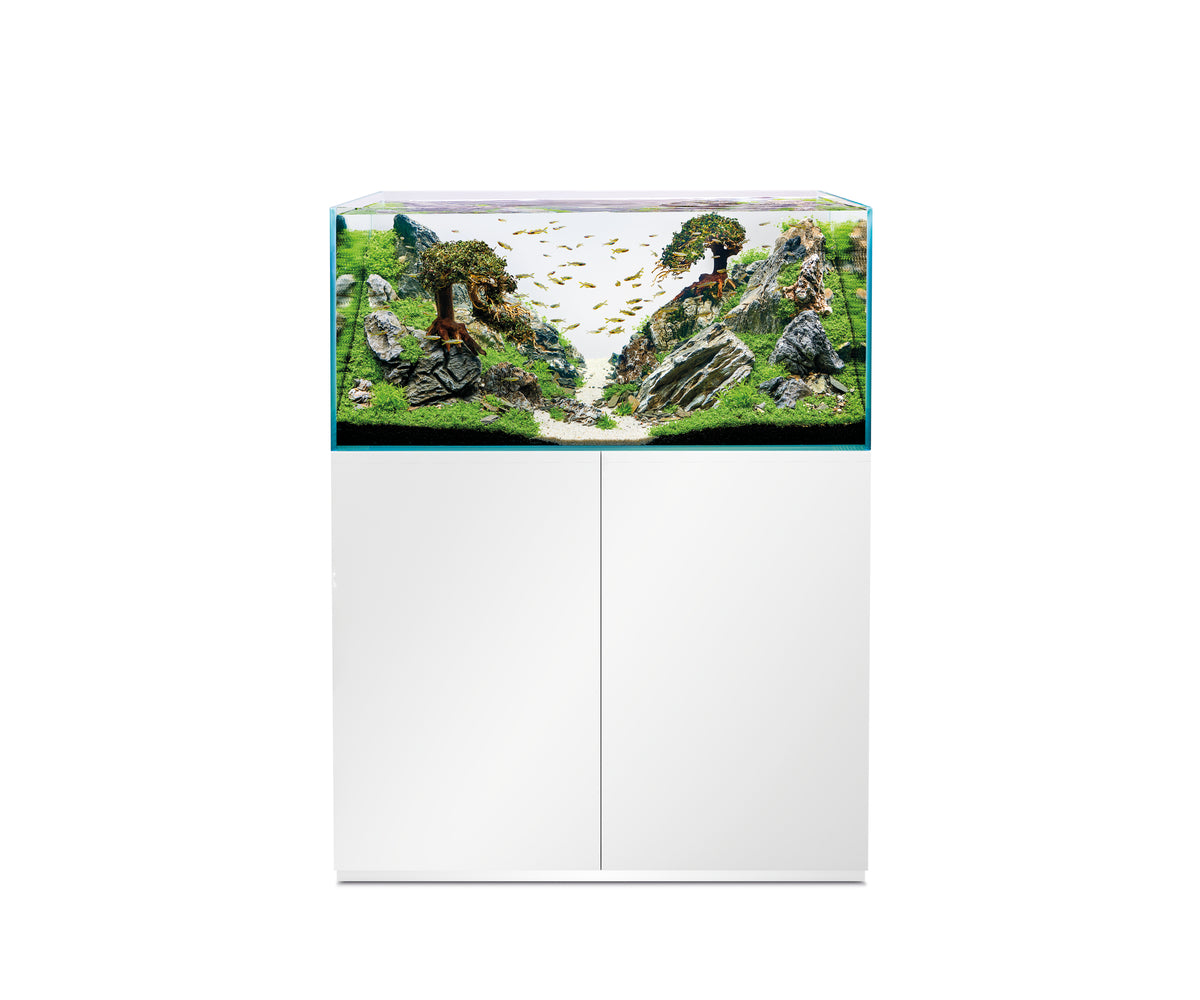 Ein Aquarium von Profis für Profis. Das ScaperLine 100 ist ein Aquarium für professionelle Ansprüche beim Aquascaping: Unser Fokus liegt auf Purismus und Natürlichkeit. Im Aquascaping verbindet sich die Pflege von Pflanzen und Fischen mit höchsten Ansprüchen an Design und Funktionalität. Das ScaperLine 100 mit den Maßen 100 x 50 x 50 cm überzeugt mit auf Gehrung geschnittenem Weißglas ohne Grünstich, das dem Kunstwerk im Aquarium einen Rahmen gibt. Der bis ins Detail durchdachte Unterschrank in Schwarz in Manufakturqualität mit der schlichten Linienführung bietet funktionale Features: den magnetischen Werkzeughalter, der die Scaper-Tools aufnimmt und griffbereit hält, einen Handtuchhalter, eine geschikt platzierte Kabel- und Schlauchführung für eine aufgeräumte Optik sowie einen ausziehbaren Regalboden für den optionalen Außenfilter. Der Schrank bietet also viel Stauraum für Aquascaping-Zubehör und die Aquarientechnik. Optional lässt sich das ScaperLine als Raumteiler umrüsten. Manche sagen, das sei pedantisch – wir nennen es die unbedingte Liebe zum Detail.
